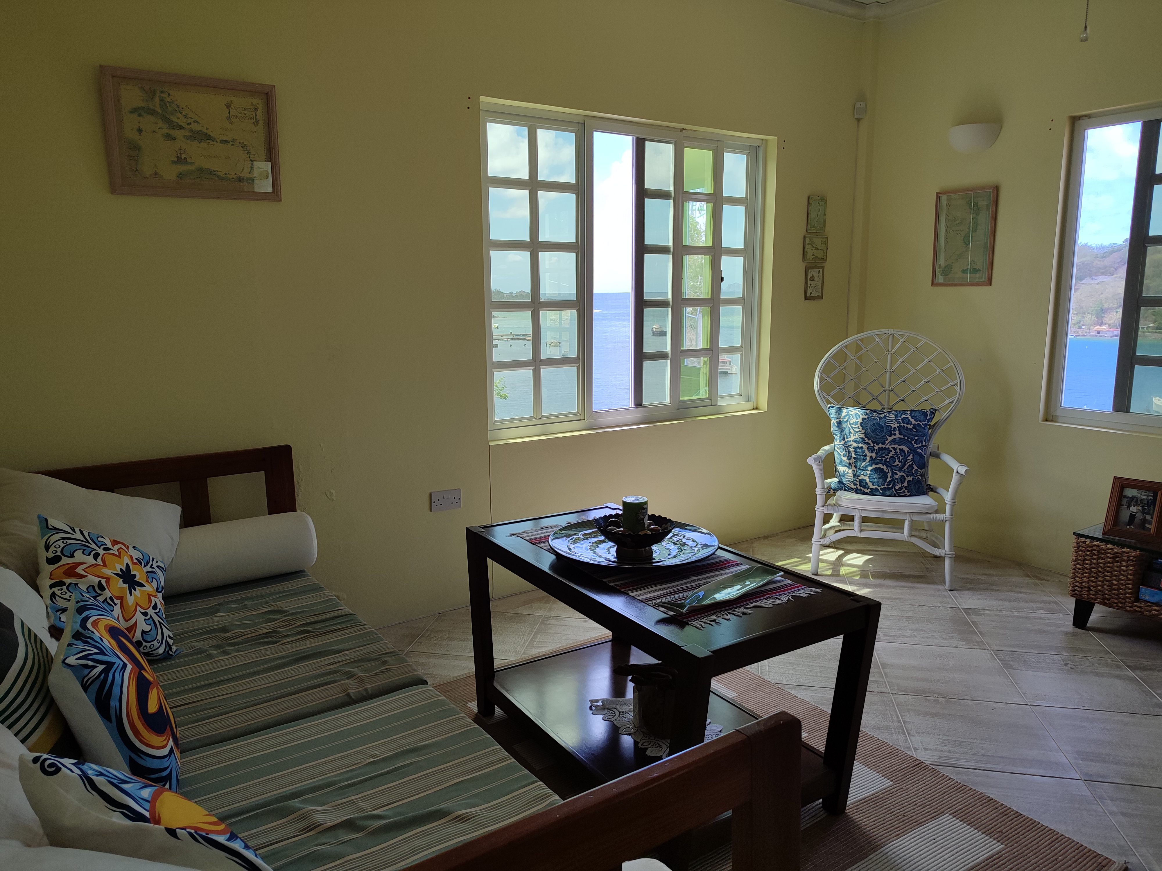On Villa Beach, St Vincent sits a concrete two story home (income property) with beautiful ocean views and wide open views of the Grenadines. This property is the only resident/income property beach on Villa and steps away from hotels, restaurants, bars and Young Island dock.